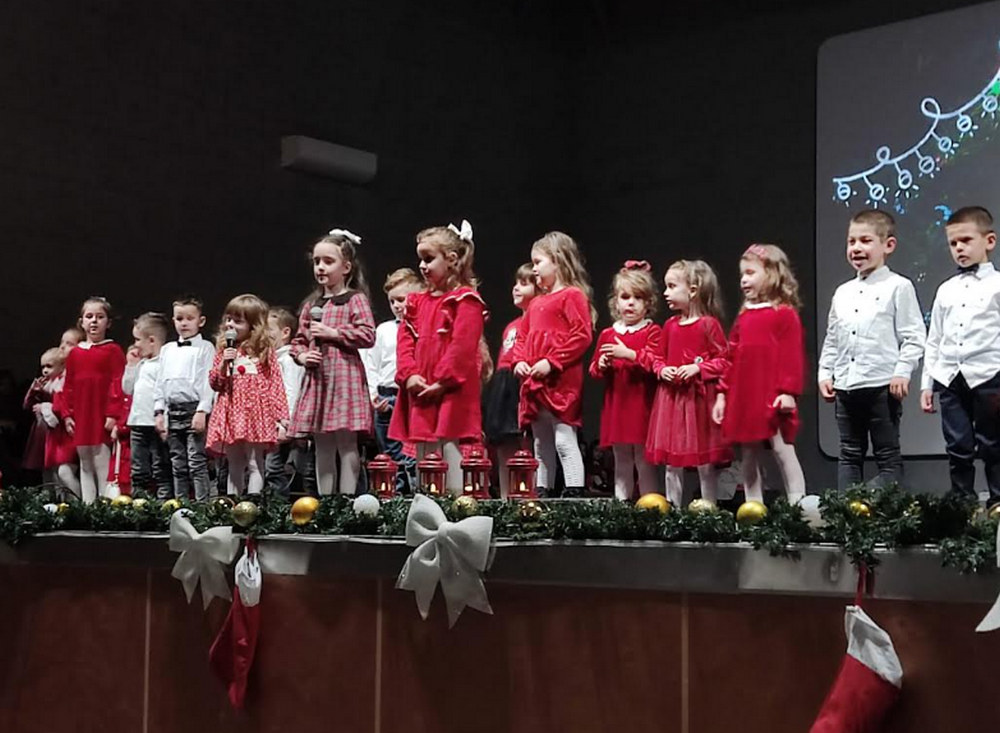 Najmlađi vrtićanci raznježili su publiku svojim iskrenim nastupima, božićnim pjesmama i čarobnim plesnim točkama, pokazujući koliko se ljubav i poruka Božića mogu prenijeti dječjim osmijehom.