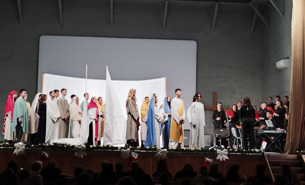 Oko 50 srednjoškolaca sudjelovalo je u odličnom glazbeno scenskom prikazu - uprizorenju biografije Isusovog života nadahnut djelom Khalila Gibrana "Isus, Sin Čovječji". Glazba školskog zbora, instrumenti, kostimi, scenografija te zreli pristup i snažni scenski nastup učenika probudili su emocije svih prisutnih.