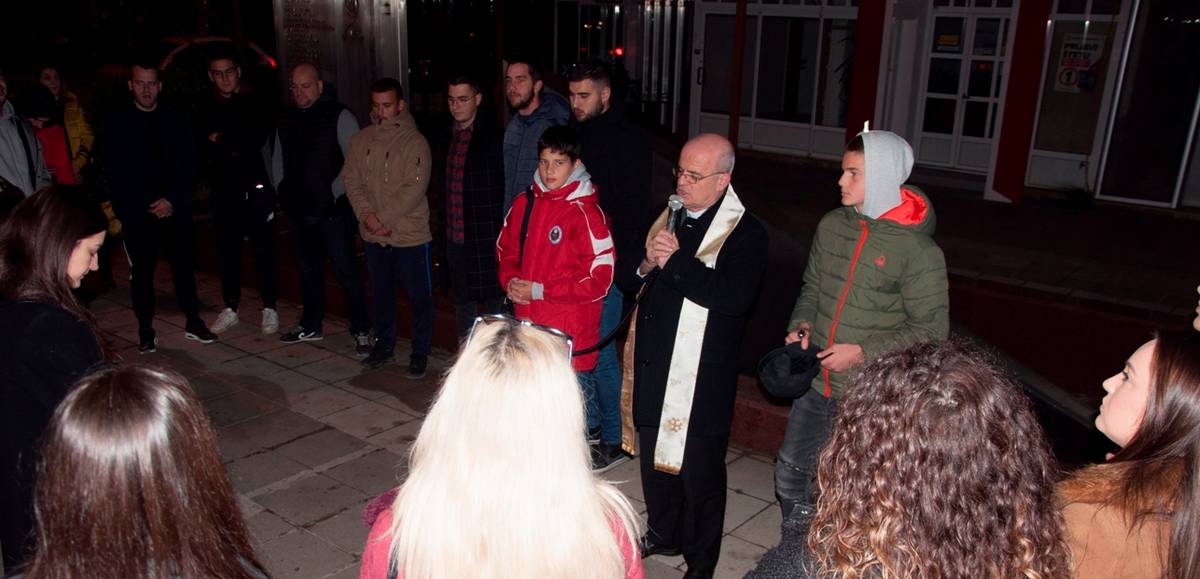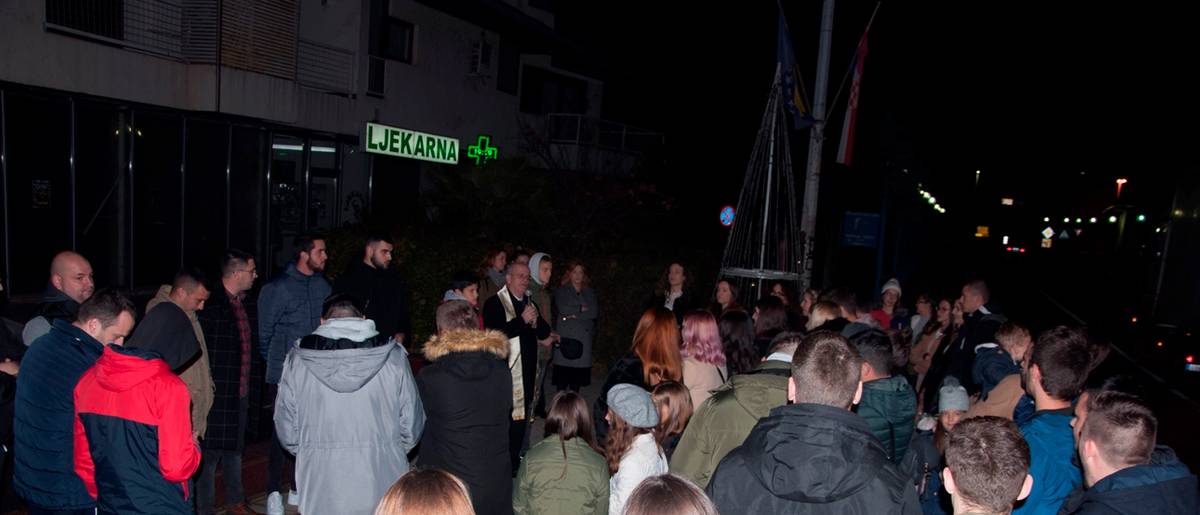 U pratnji ministranata stolački župnik don Rajko Marković na početku je pozdravio sve nazočne, naglasio koja je poruka i smisao Adventa, te blagoslovio Božićni bor, Jaslice i sve nazočne: djecu, roditelje i mlade, čestitao im na ovoj plemenitoj akciji kićenja Bora, postavljanja Jaslica i paljenja Prve adventske svijeće, zatim zaželio svima ugodno i lijepo druženje u stolačkoj adventskoj večeri i tim činom otvorio „Advent u Stocu 2020.“
