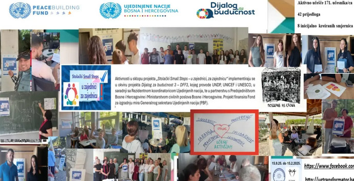 Aktivnosti u sklopu projekta "Stolački Small Steps – u zajednici, za zajednicu" implementiraju se u okviru projekta Dijalog za budućnost 3 – DFF3, kojeg provode UNDP, UNICEF i UNESCO, u suradnji s Rezidentnom koordinatoricom Ujedinjenih naroda te u partnerstvu s Predsjedništvom Bosne i Hercegovine i Ministarstvom civilnih poslova Bosne i Hercegovine.