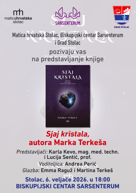 Mladi stolački autor, Marko Terkeš, predstavit će svoju prvu knjigu "Sjaj kristala" u biskupijskom centru Sarsenterum u Stocu, 06. veljače u 18 sati.