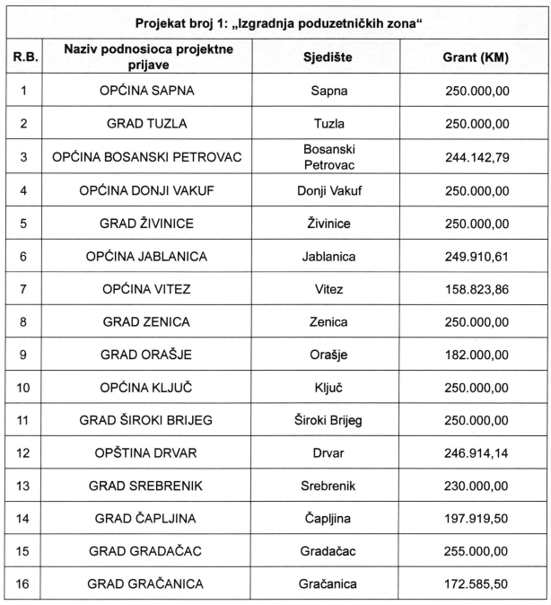 Federalno ministarstvo razvoja, poduzetništva i orbta donijelo je konačnu rang listu korisnika grant sredstava za 2026. godinu za Izgradnju poduzetničkih zona.