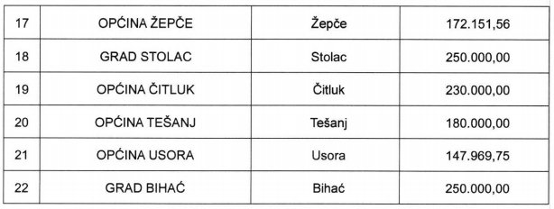 Stocu je odobren iznos od 250.000 KM, a ukupno su sredstva dobile 22 općine i gradovi.