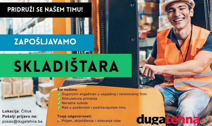 Ukoliko ste zainteresirani da postanete dio Duga-tehna tima, molimo da pošaljete prijavu putem e-maila na: posao@dugatehna.ba