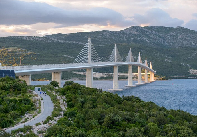 Pelješki most, građen od 2018. do 2022. godine, strateški je projekt kojim je jug Hrvatske spojen s ostatkom zemlje. Ukupna vrijednost projekta iznosila je oko 420 milijuna eura, od čega je Europska unija kroz bespovratna sredstva osigurala 357 milijuna eura.