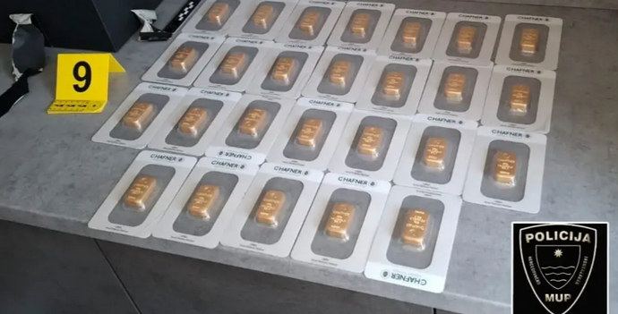 Tom prilikom pronađeno je i uz potvrdu oduzeto 26 poluga zlata ukupne mase 6,5 kilograma, procijenjene vrijednosti preko 1.000.000 KM, za koje osumnjičeni nisu posjedovali dokaz o porijeklu niti su ih prijavili nadležnim organima pri ulasku u Bosnu i Hercegovinu, priopćeno je iz MUP-a HNŽ.