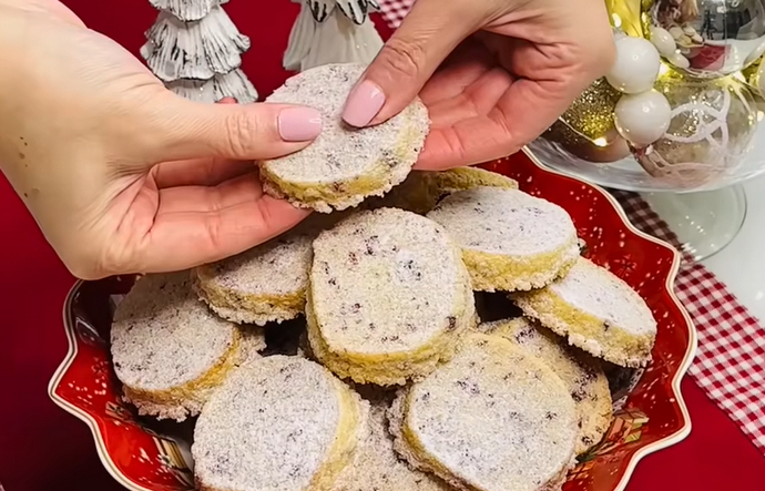 Hladno tijesto izvadite - režite krugove cca 6-7 mm. debljine - svaki kolačić uvaljajte još jednom u šećer- složite na lim obložen pek papirom, razmaknite dovoljno jer se tijekom pečenja rašire… pecite kratko u pećnici zagrijanoj na 160* - bez ventilatora 7-10 min. Da ostanu svijetli i mekani iznutra. Ohladite potpuno, po želji umočite u bijelu ili crnu čokoladu, prošarajte, pospite pistacijem, jestivim ružinim laticama, zlatnim prahom ili ostavite rustikalne.